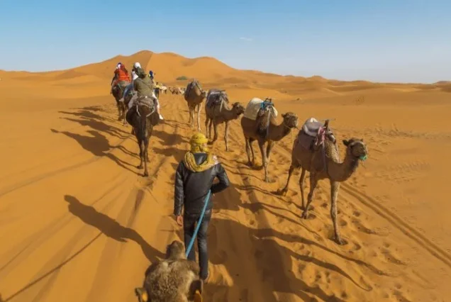 Este viaje de 3 días desde Fez al desierto de Merzouga ofrece una experiencia completa atravesando el Medio Atlas y descubriendo la diversidad natural y cultural de Marruecos. En la ruta se visitan ciudades como Ifrane, conocida como la Suiza marroquí, y los bosques de Azrou, hogar de los famosos monos salvajes. Tras un almuerzo en el pueblo bereber de Zaida, el recorrido continúa por Midelt, el valle del Ziz y Erfoud, hasta llegar a Merzouga, donde un paseo en camello conduce a los viajeros hacia el campamento de haimas en las dunas del Erg Chebbi, con cena tradicional y un espectáculo de música bereber bajo las estrellas.